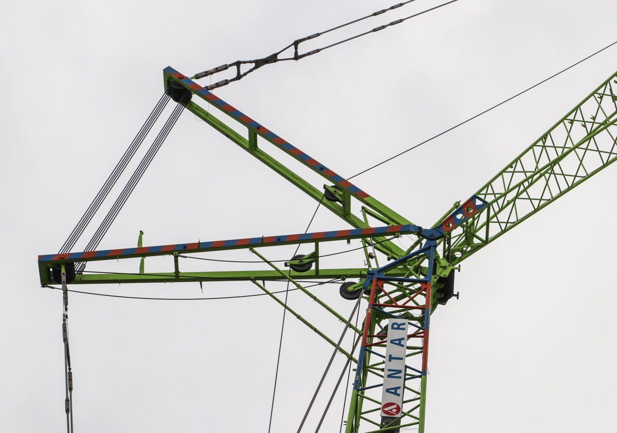 This crane is erected with a 44-metre-long main boom and a 33-metre-long luffing jib. An impressive crane by Antar!