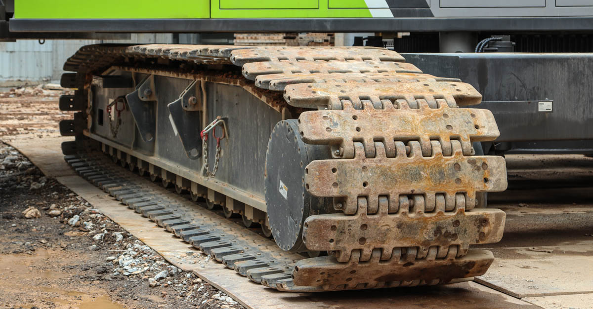 For transport on public roads, the crawler tracks must be separated from the body. A single crawler track is 8.98 metres long, 1.2 metres wide and 1.4 metres high. The weight per unit is 24.5 tonnes.