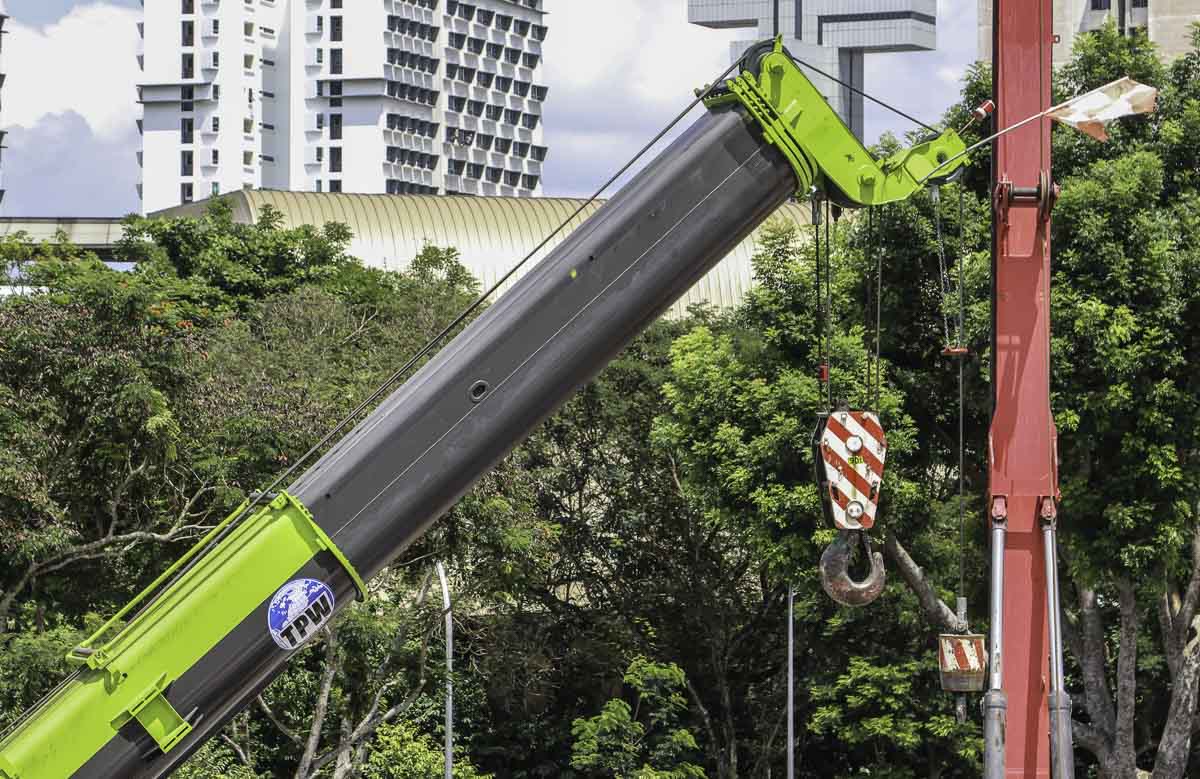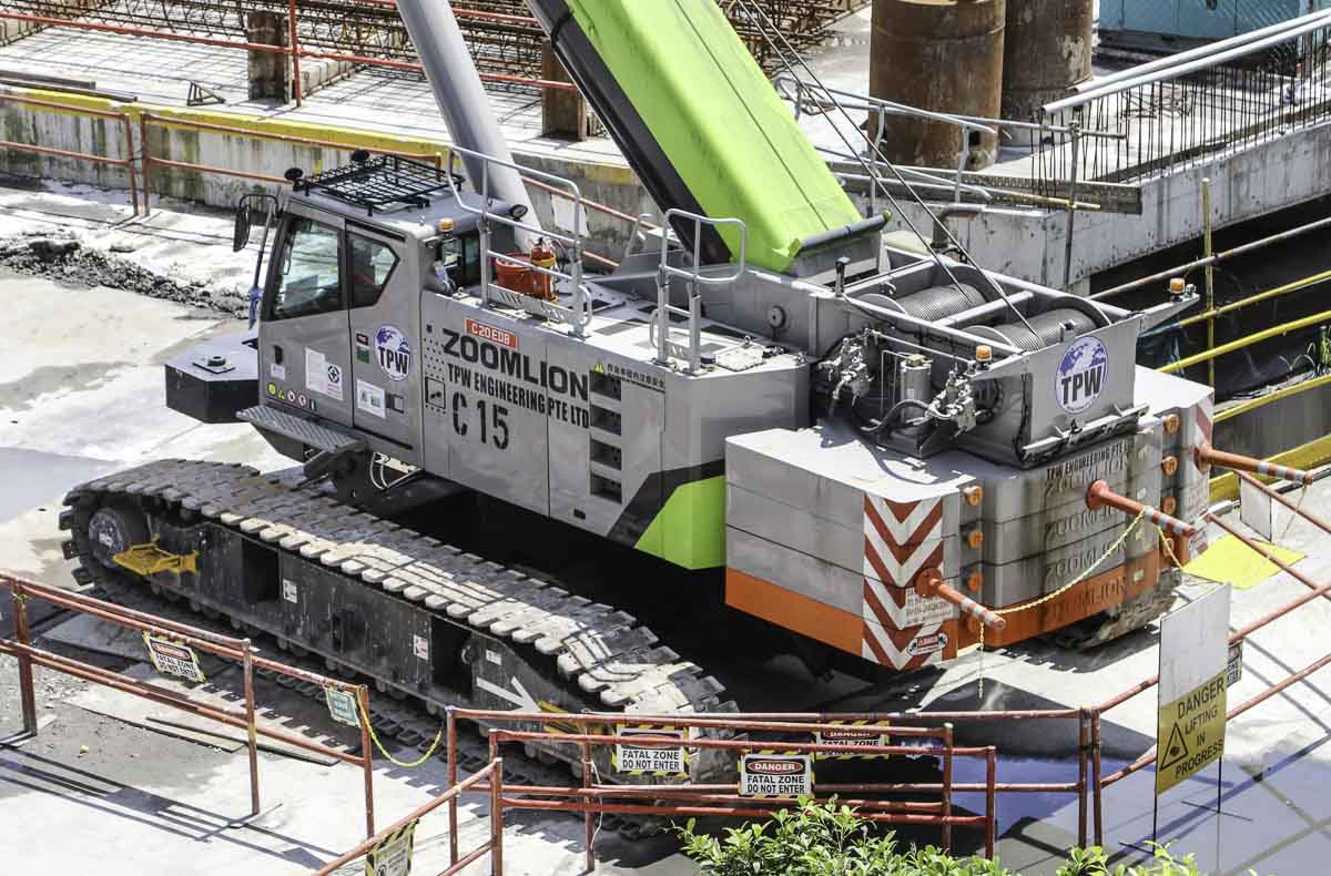 This interesting and sharp Zoomlion ZCT900V was used by TPW Engineering from Singapore (SG) as assist crane to a driling rig. It is a 90-tonne crawler crane with telescopic boom with year of manufacture 2020.