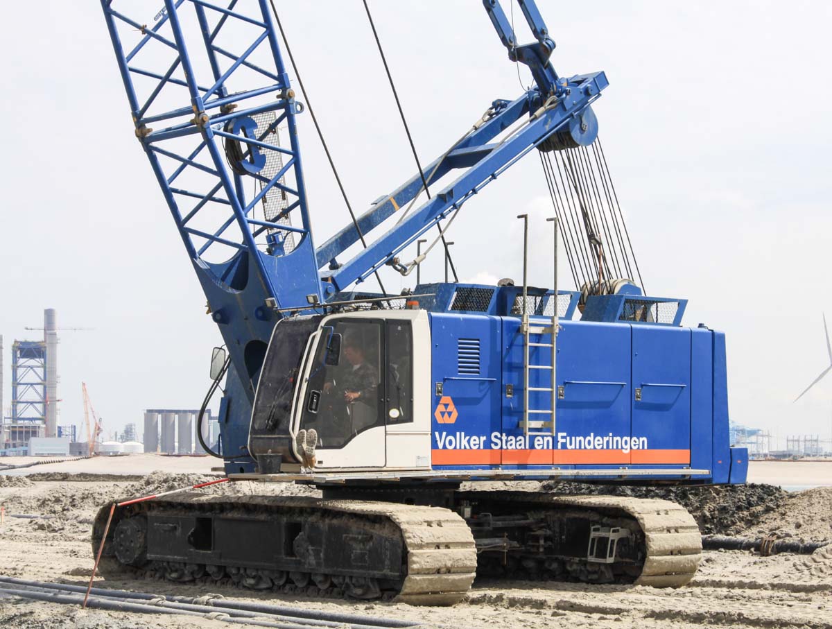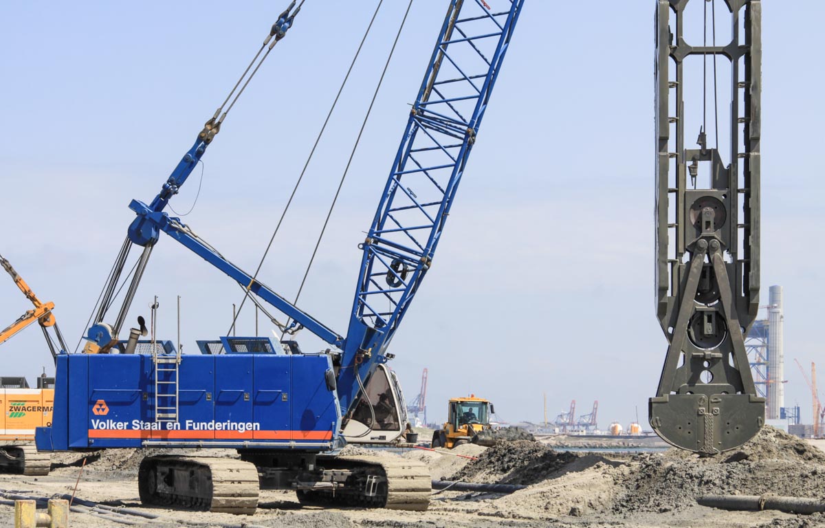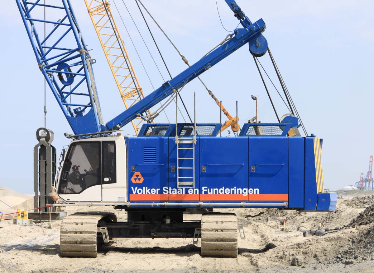 This Liebherr HS 875 HD of Volker Staal en Funderingen from Dordrecht (NL) was together with the HS 875 HD of BAM and Zwagerman VMT used on a construction site on the Second Maasvlakte (NL) to dig large slurry walls for large quay walls.