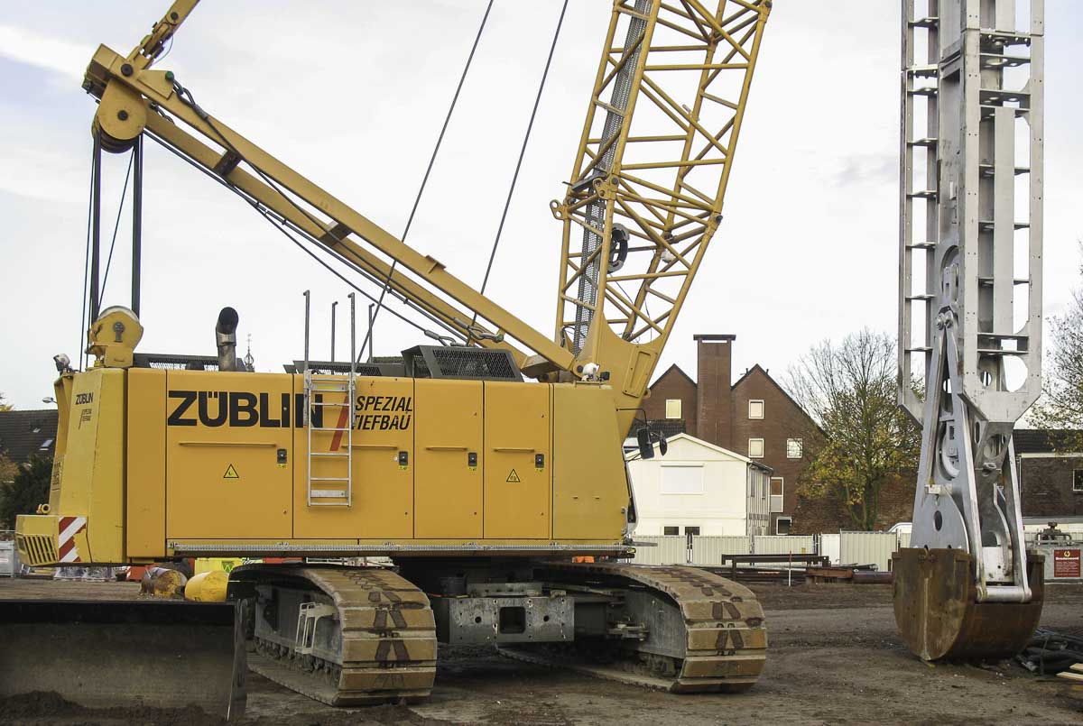This interesting Liebherr HS 885 HD belongs to Züblin Spezialtiefbau from Stuttgart (DE) and was used on a construction site in Harderwijk (NL) to make a slurry wall foundation for an underground parking, using a mechanical slurry wall grab.