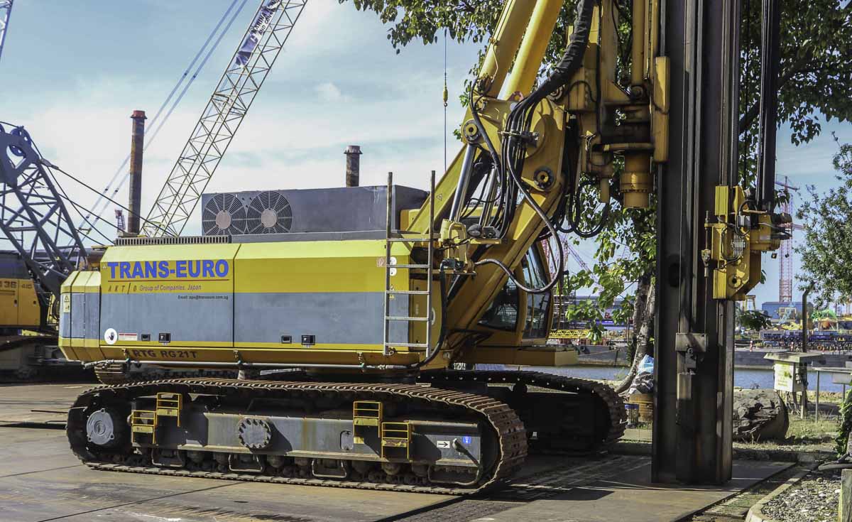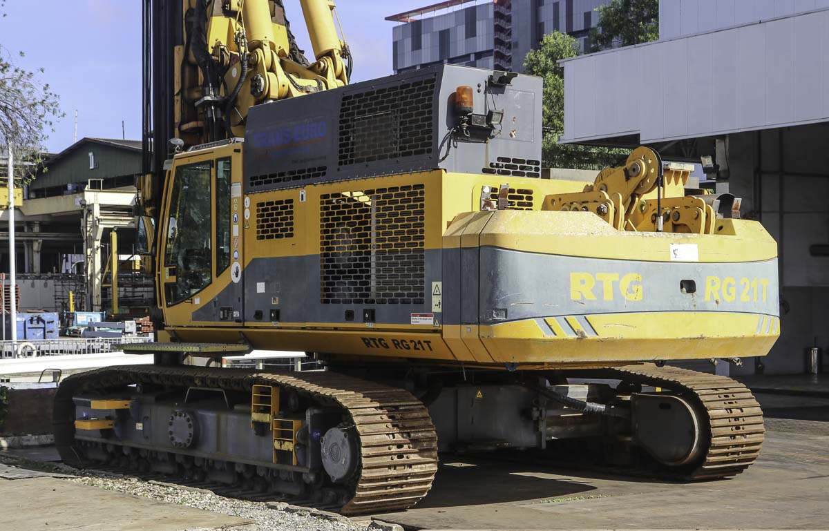 This sharp and interesting RTG RG 21 T belongs to Trans-Euro from Singapore (SG) and stood parked on their yard. It is a foundation rig with an extendable leader. The rig has an operational mass of approx. 71 tonnes.