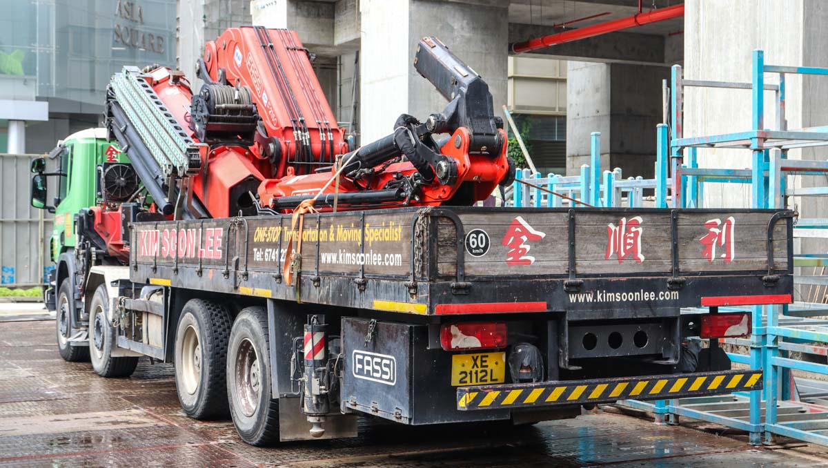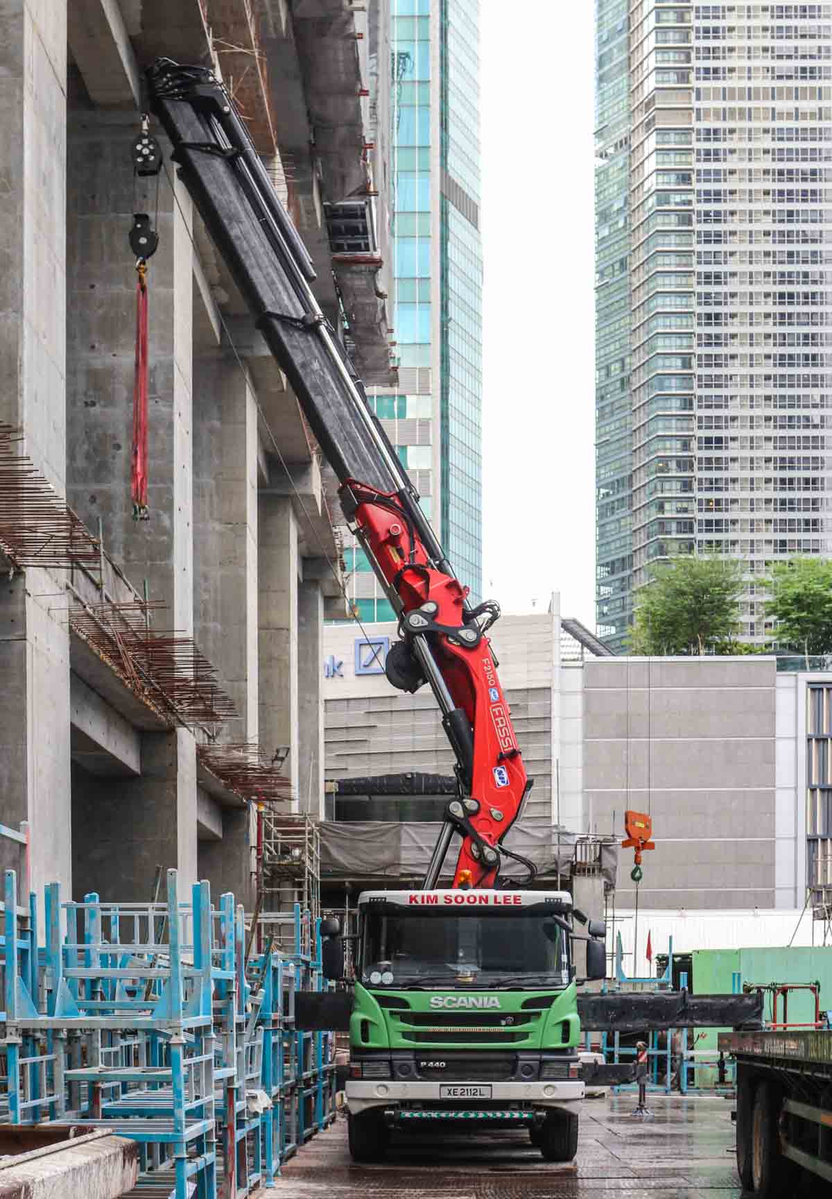 This interesting Scania P 440 rigid truck with heavy lorry crane of Kim Soon Lee from Singapore (SG) was to be deployed for a special lifting job in the city centre.