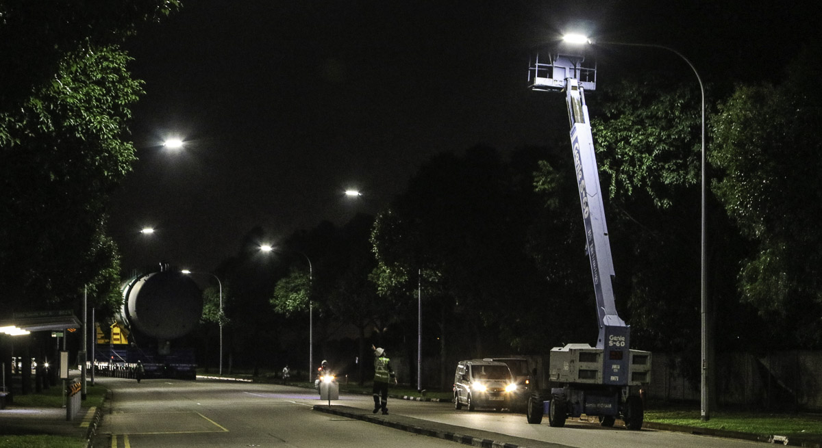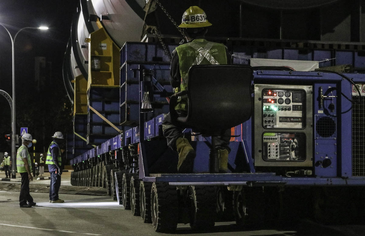 The transport now turns slowly into Tuas South Ave 12, the construction site is almost reached.