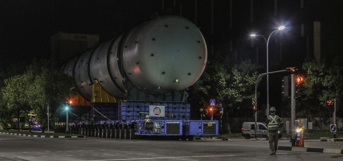 Around 10:00 PM does the large transport start to roll, after leaving the port area is the transport about the drive a long stretch forwards.