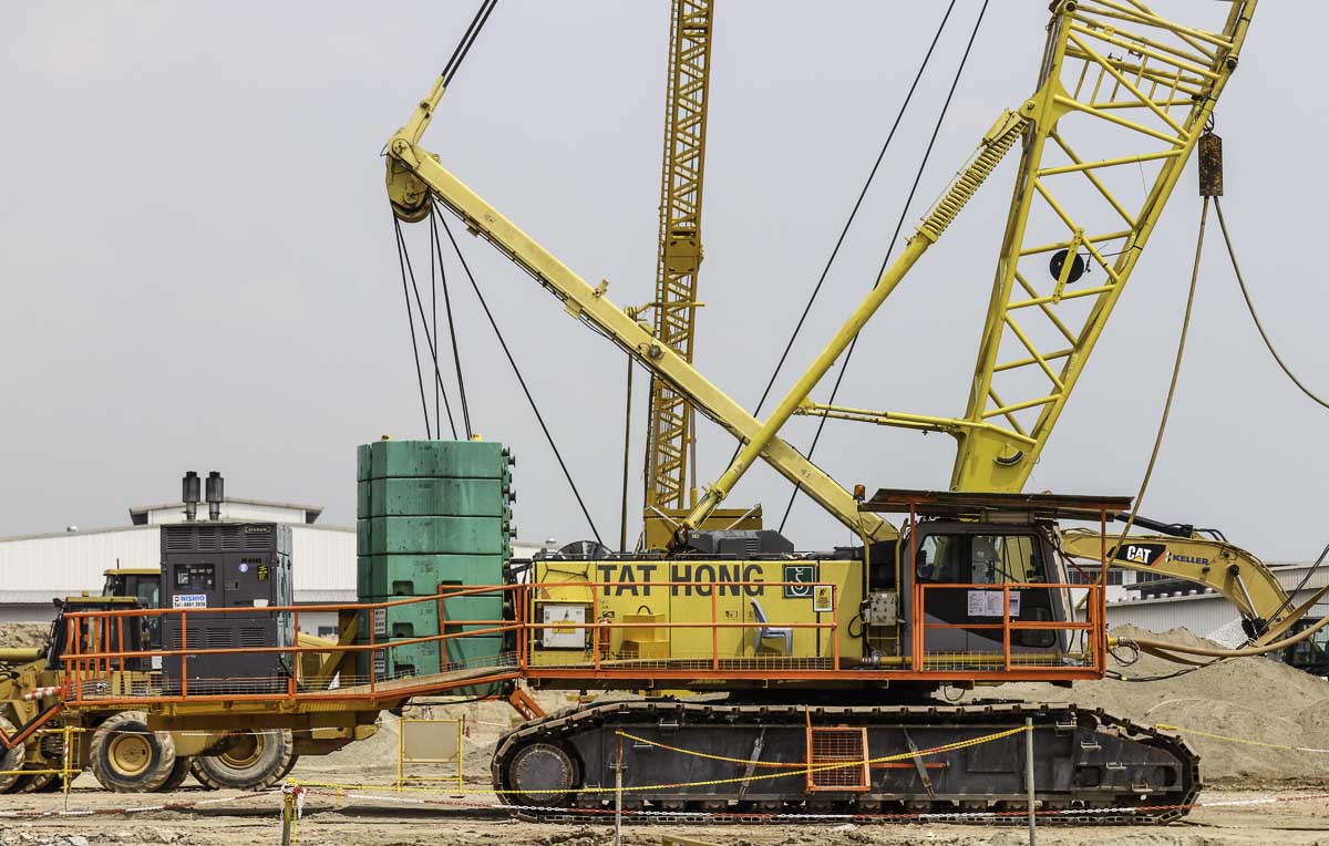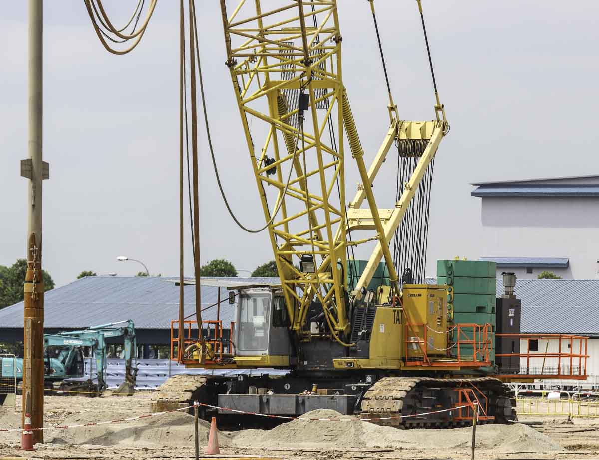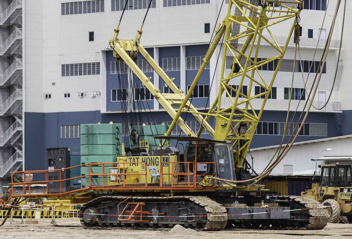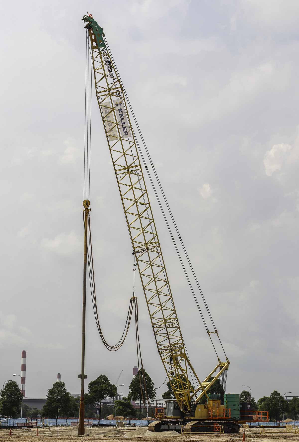 Deze fraaie Hitachi Sumitomo SCX2000A-2 van Tat Hong uit Singapore (SG) werd samen met een Kobelco CKE2500-2 en een Kobelco 7120S op een bouwplaats voor bodemverdichting ingezet.