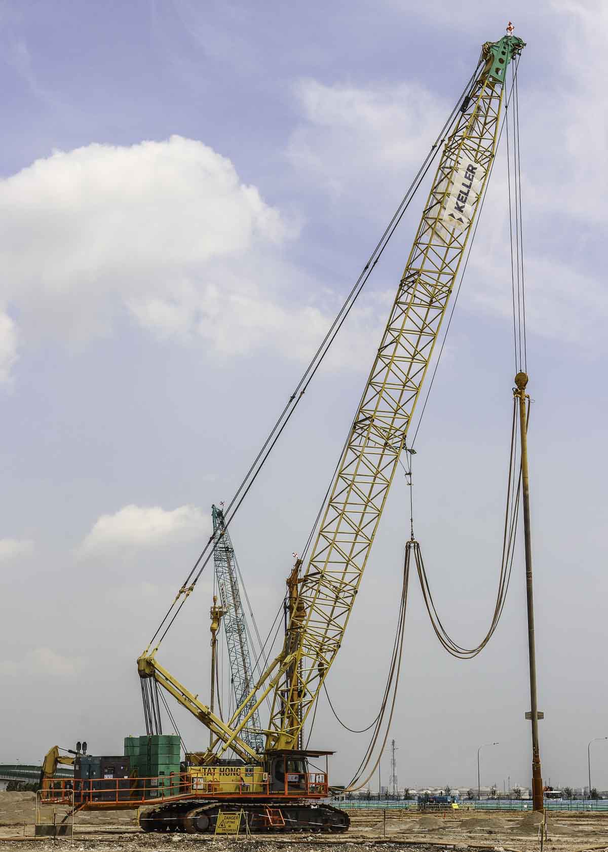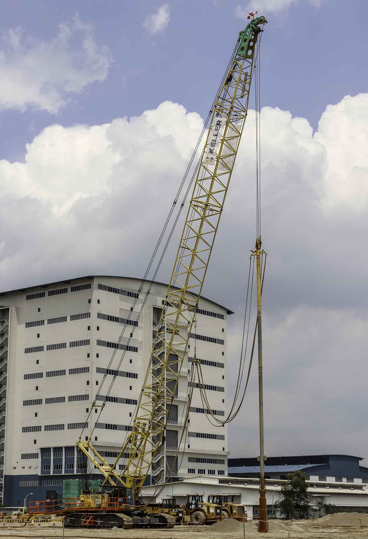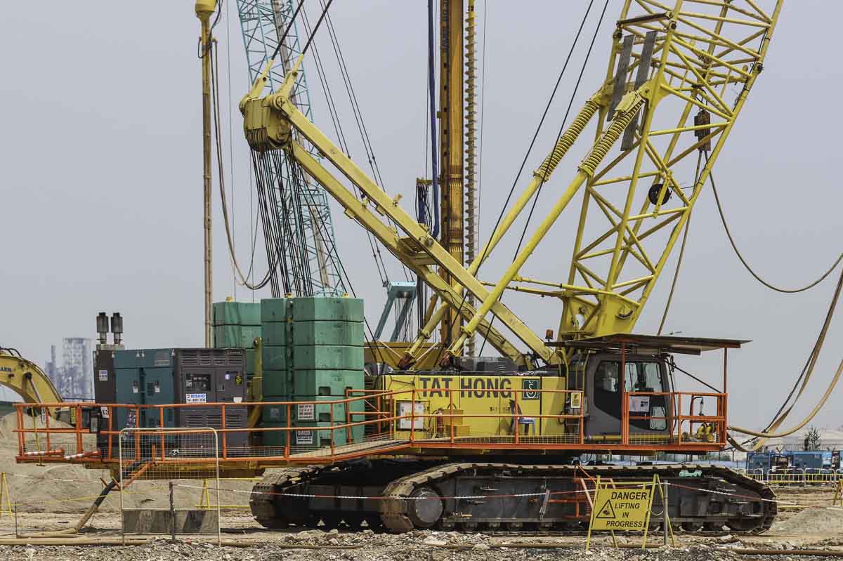 Deze fraaie Hitachi Sumitomo SCX2000A-2 van Tat Hong uit Singapore (SG) werd samen met een Kobelco CKE2500-2 en een Kobelco 7120S op een bouwplaats voor bodemverdichting ingezet.