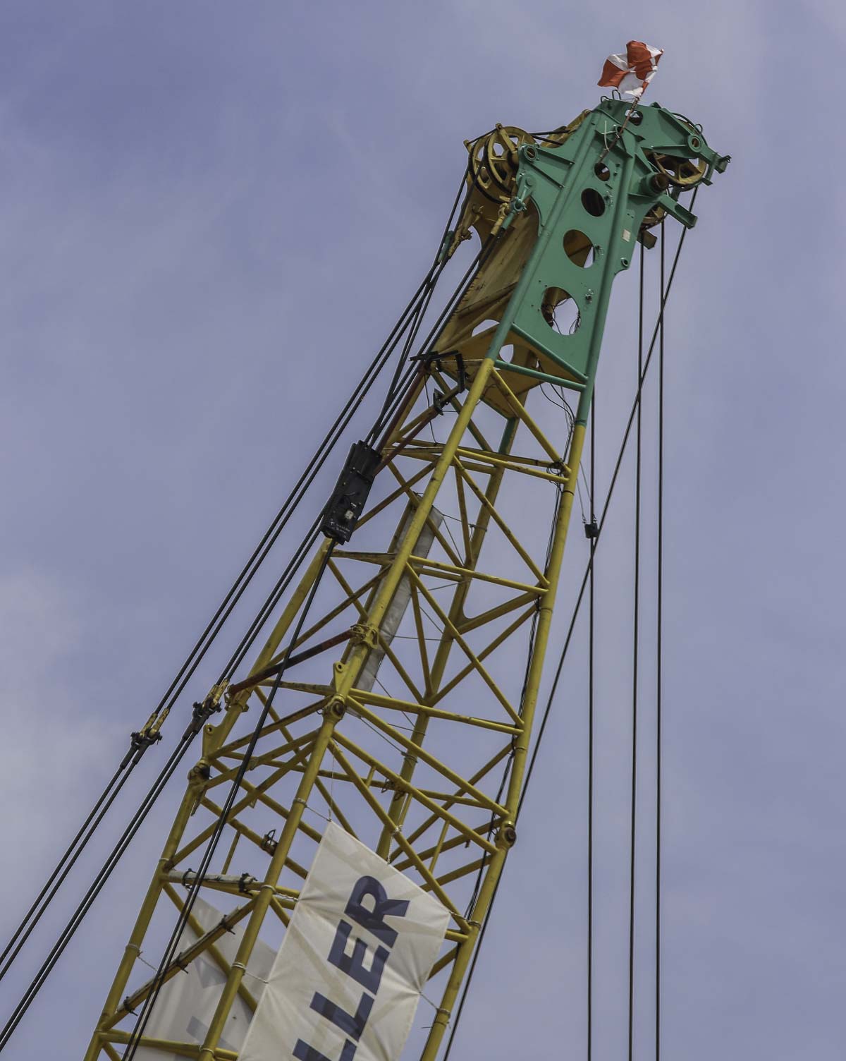 Op deze bouwplaats werd de kraan met een 45,75 meter lange hoofdmast ingezet. In deze configuratie kan de kraan maximaal 80 ton op 9 meter vlucht of 13,3 ton bij 41,2 meter vlucht hijsen.