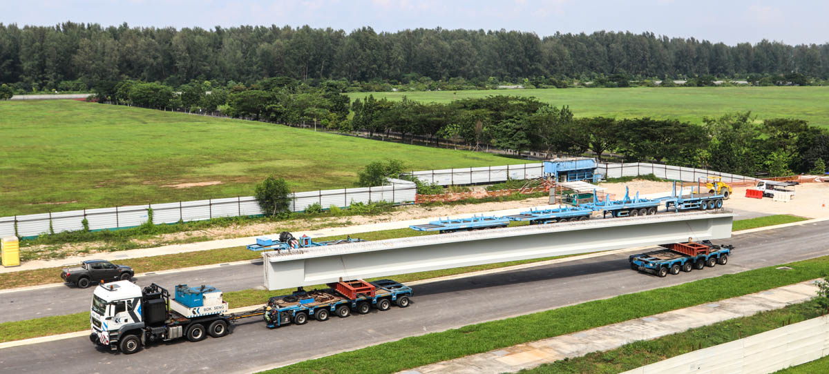 Ook het transport van de balken werd door Bok Seng uitgevoerd. Daartoe zette zij onder andere een MAN TGS 40.540 met twee zes-assige Scheuerle K25 modules met draaitafels in.