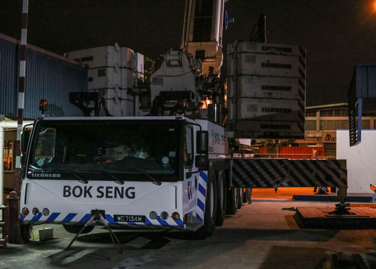 Samen met een Liebherr LTM 1200-5.1 van Bok Seng.