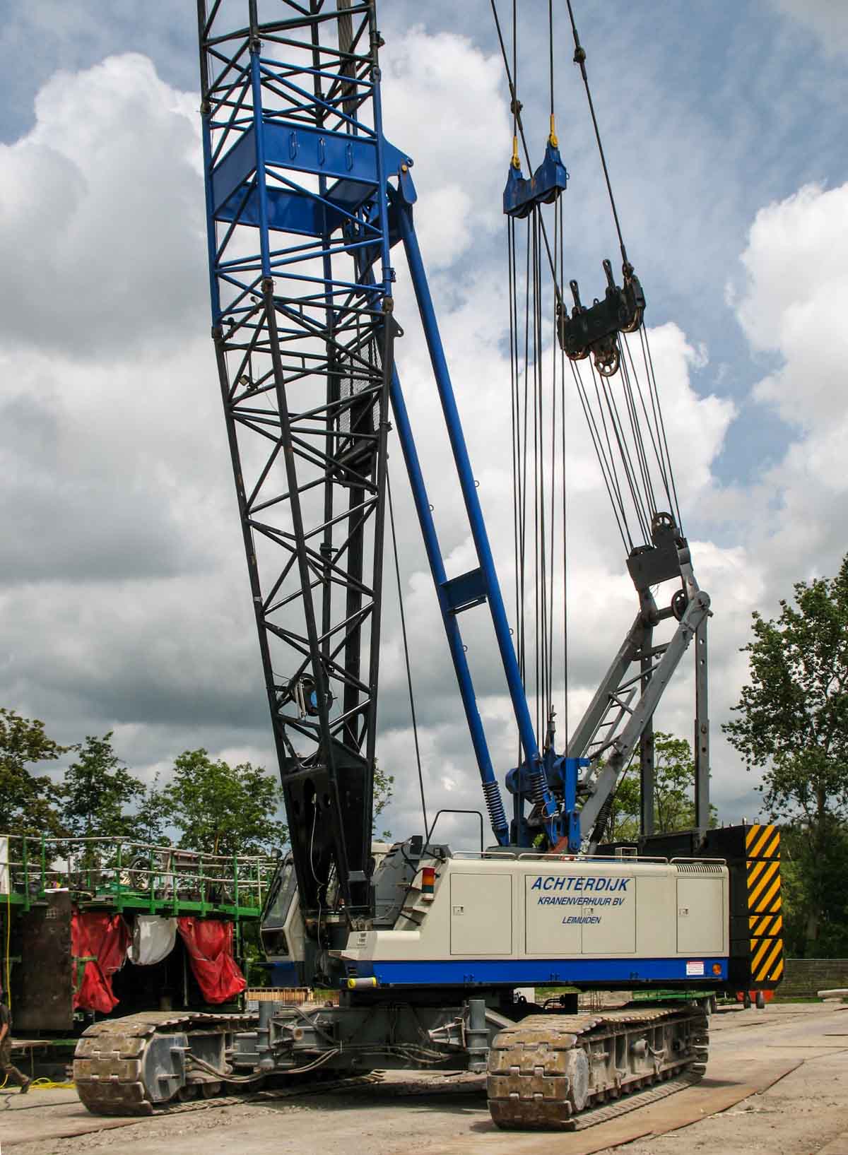 Deze fraaie Hitachi CX1000 is van Achterdijk Kranenverhuur uit Leimuiden (NL). De oorspronkelijke 100-tons rupskraan is naar een 120-tonner opgewaardeerd. Deze kraan is met extra ballastgewichten en een versterkte hoofdmast uitgevoerd.