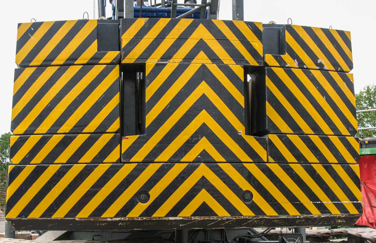 De standaard ballast bestaat uit achte delen en heeft een totaalgewicht van 39,2 ton, de draaicirkel van de ballast meet 4,99 meter. In het midden is een negende blok ballast gemonteerd die niet standaard is, het gewicht is mij ook niet bekend.