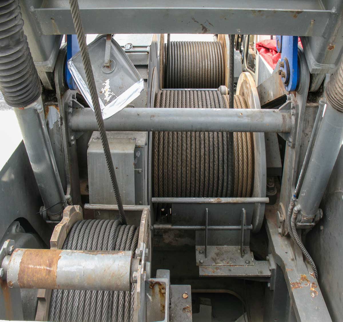 In de bovenwagen zijn drie lieren gemonteerd. Onder is de versteldraad van de hoofdmast zichtbaar, de twee bovenste lieren hebben elk een reeptrek van 12,5 ton. De middelste lier wordt in dit geval gebruikt om de beweegbare jib te verstellen, de bovenste lier wordt als hijslier gebruikt.