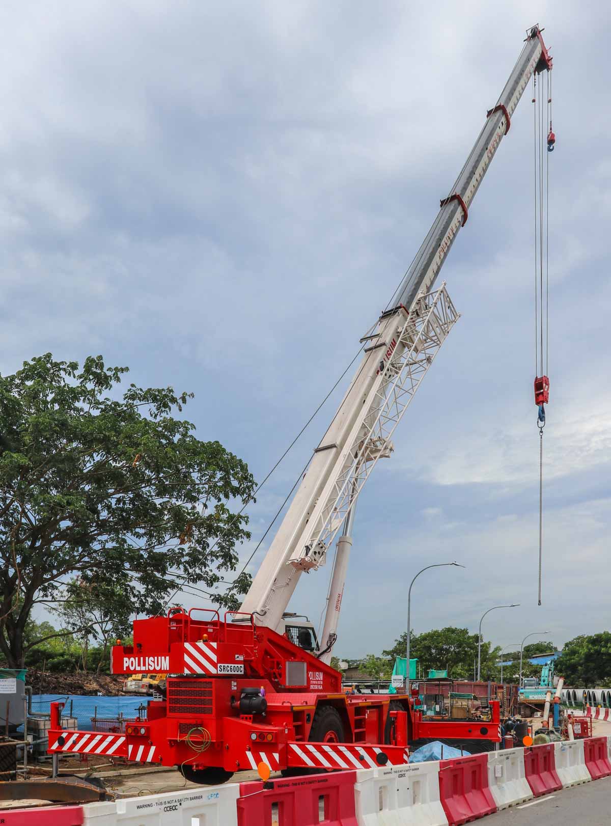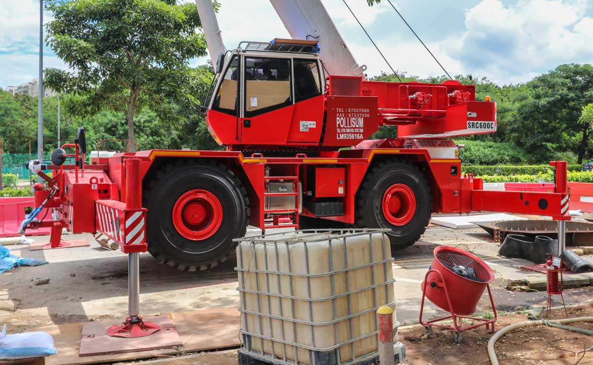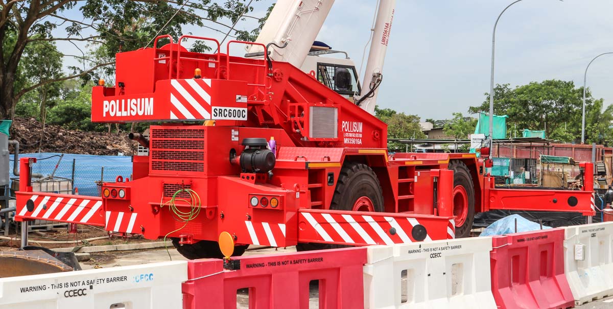 Deze interessante Sany SRC600C is van Pollisum uit Singapore (SG) en werd op een bouwplaats aldaar ingezet. Het is een 60-tons ruig-terrein kraan uit het bouwjaar 2021.