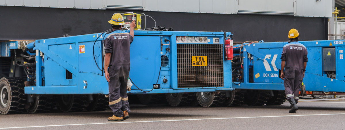 Bok Seng beschikt over ongeveer 300 SPMT aslijnen van Scheuerle en zet deze in meerdere landen in Azie in. Met de SPMT aslijnen kunnen hoogteverschillen van 700 mm gecompenseerd worden.
